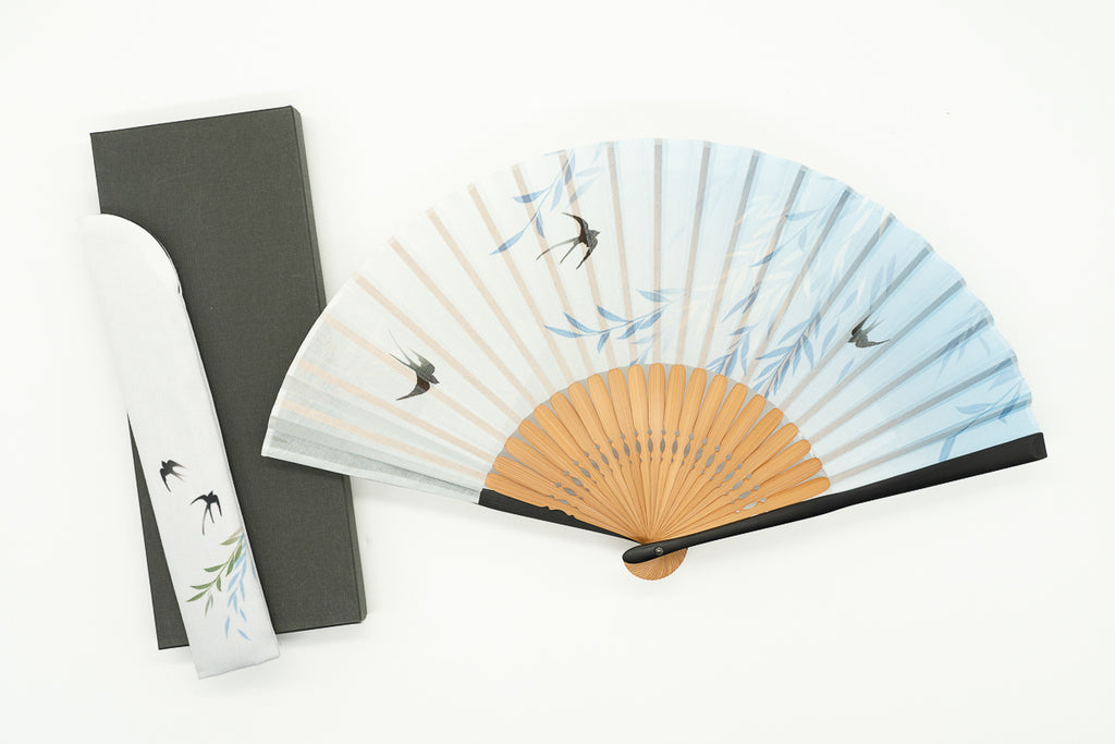 セットの扇子ケースにもツバメをあしらいました。爽やかな雰囲気で気軽に日常使いしていただけます。