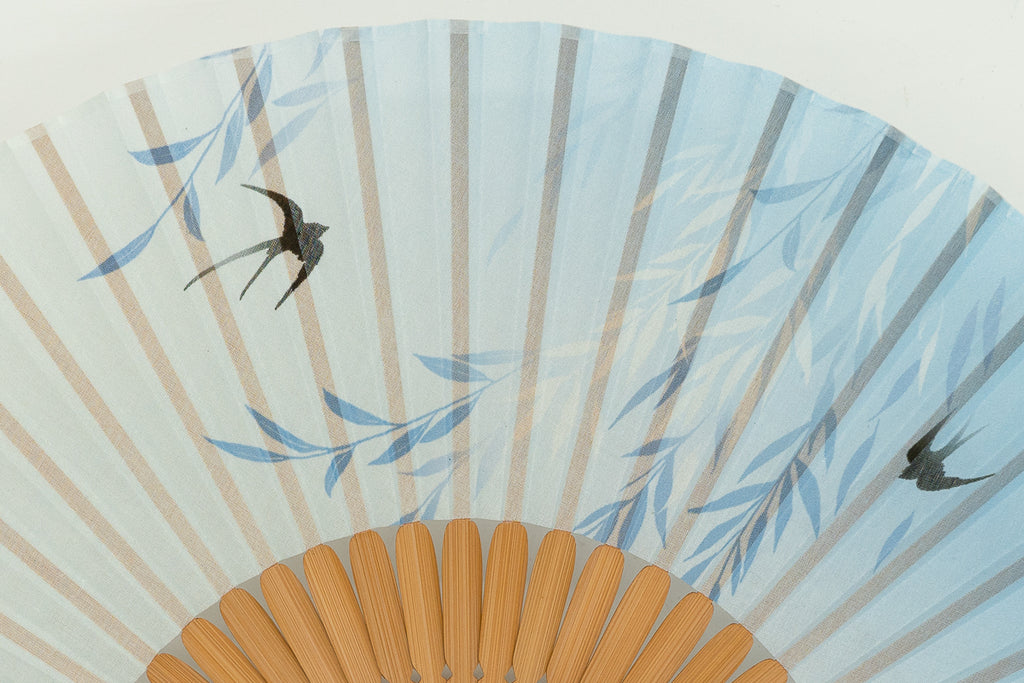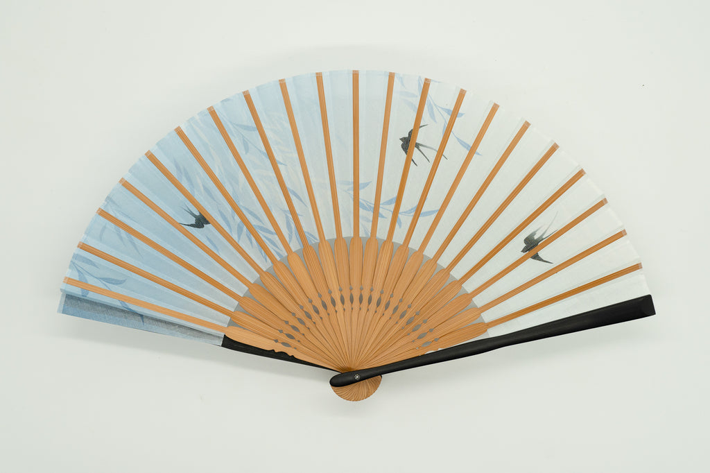 【扇子ケース付、紙箱入り】柳つばめ(ブルー3085)