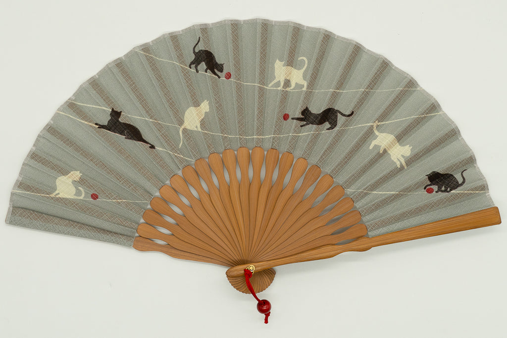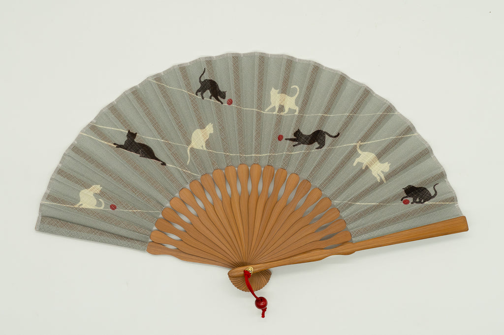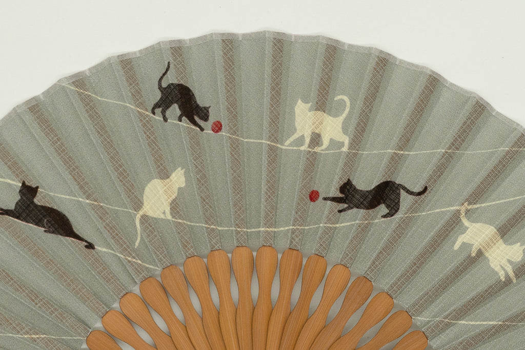【扇子ケース付、紙箱入り】猫つむぎ(すず色6562)