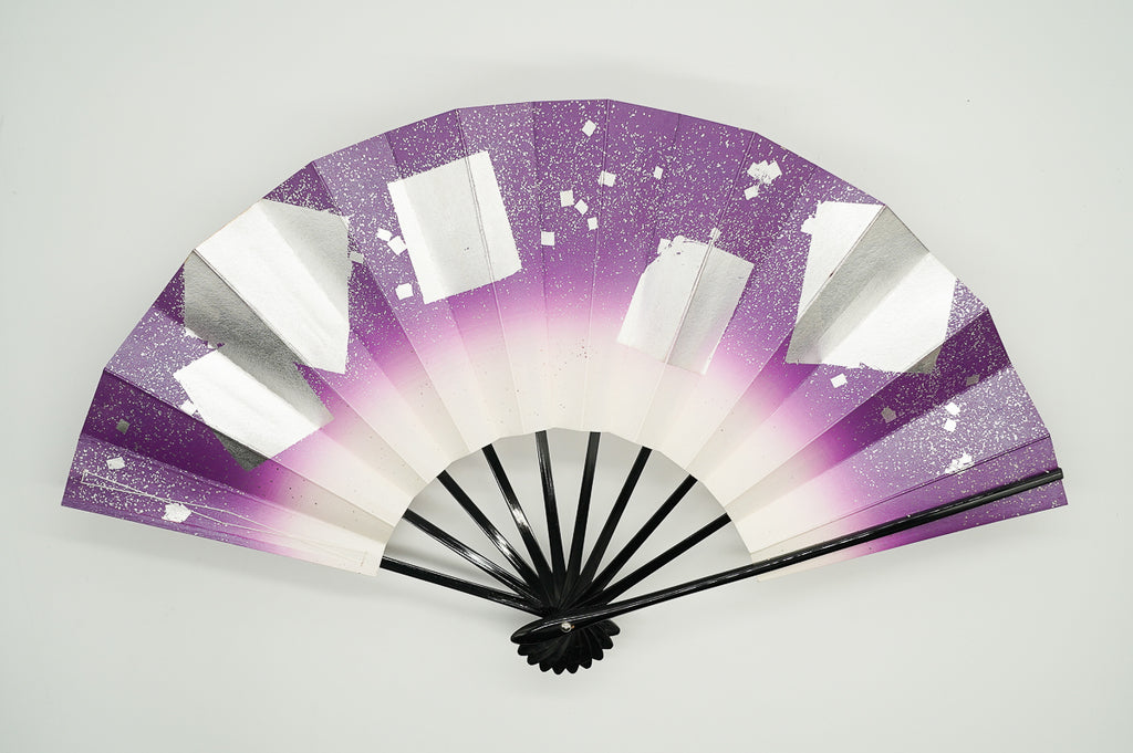 紫ぼかしに銀の色紙をあしらっています。明るく華やかな雰囲気です。