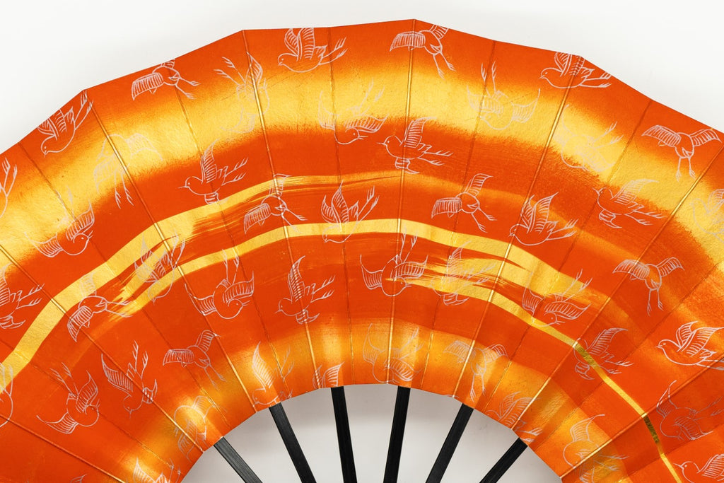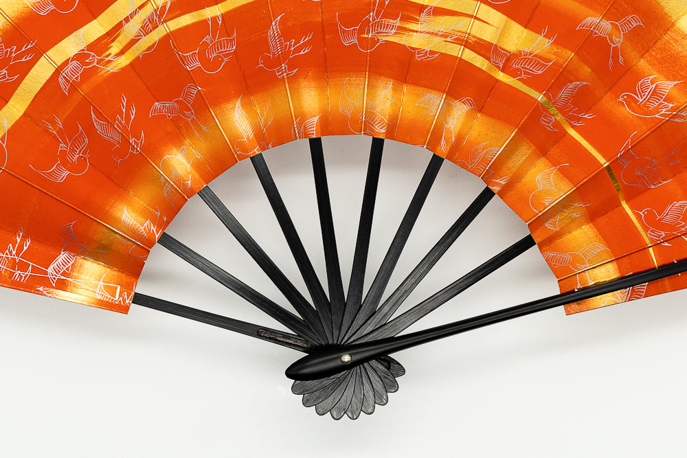 上質な金箔地の上にさび朱色のぼかしを入れて霞を表現した贅沢なお仕上げです。たくさんの可愛らしい千鳥がデザインされています。千鳥は万葉の時代から親しまれてきたモチーフで「開運祈願」「家内安全」の縁起柄です。