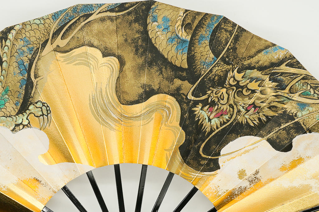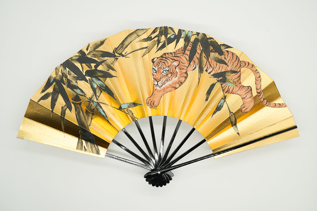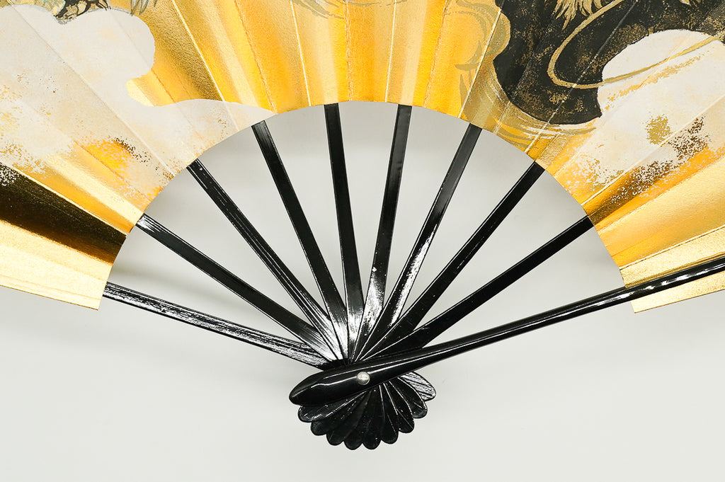 金箔地の扇面に龍、もう片面には虎が描かれています。龍虎のモチーフは外国の方にも人気があり、日本土産や贈物にもぴったりのデザインです。季節やお好みに合わせて両面お使いいただけます。