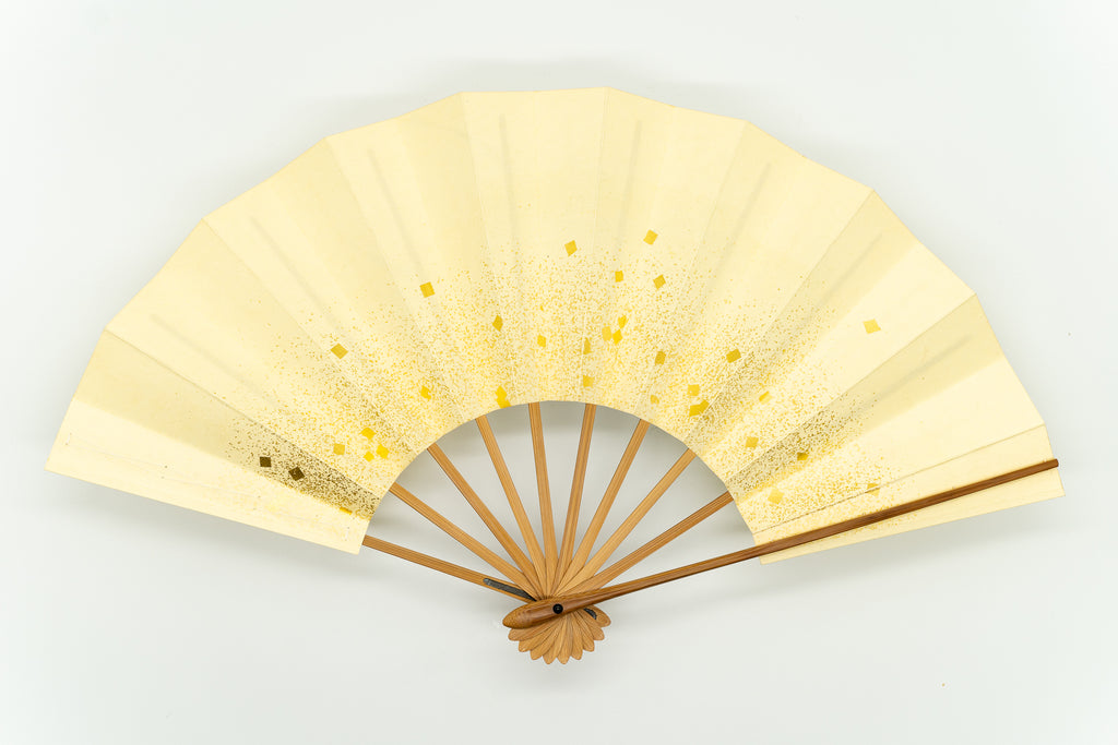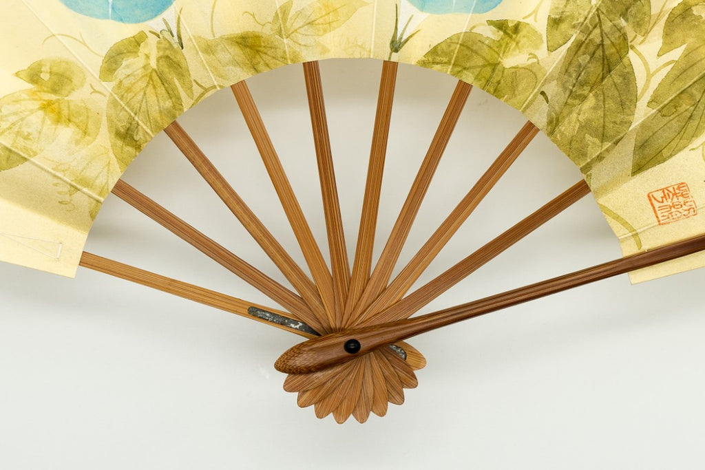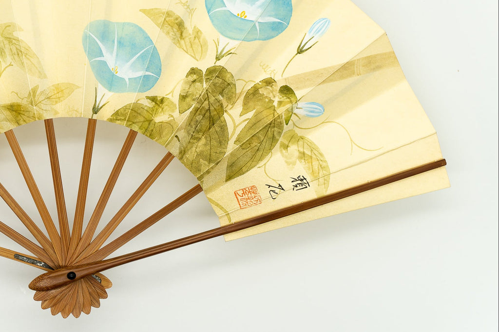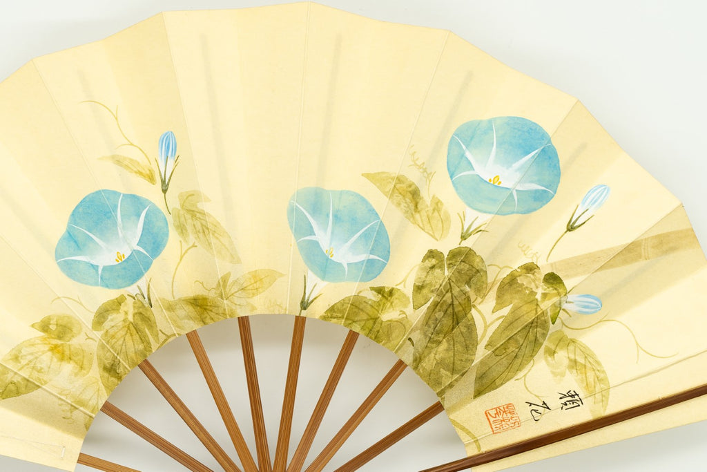 【ビンテージ品】鳥の子地の扇面に水彩で朝顔を描いています。瑞々しく、すっきりと爽やかな印象に仕上がっています。