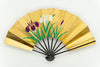 【一点もの】金箔を手で揉みこんで扇面に箔押した金もみ地に涼やかな川で優雅に泳ぐ鯉を手描きで描いています。もう片面にはあやめをあしらい、雰囲気に合わせて両面お使い頂けます。